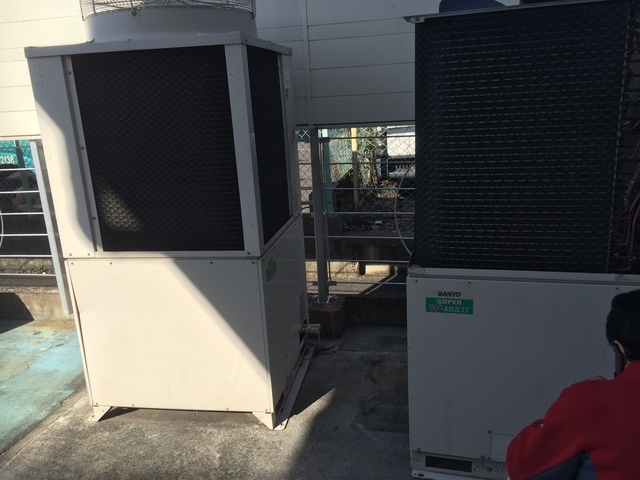 業務用エアコン室外機取外し状況建物1階に設置されてる